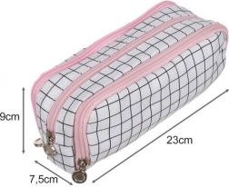 Il suo utilizzo universale è apprezzato da alunni, studenti e professionisti. L’astuccio è adatto per scuola, ufficio, per la casa e per i viaggi – puoi riporvi cosmetici, cavi, caricabatterie e altri piccoli oggetti. Il look a quadretti con bordo rosa valorizza il tuo stile.