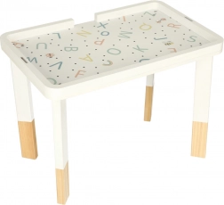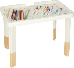 Il tavolino è realizzato in legno di qualità con bordi arrotondati ed è verniciato con colori atossici. Rispetta le norme di sicurezza europee (CE). Grazie al piano pratico, può essere usato anche come spazio per scrivere, disegnare e attività creative.