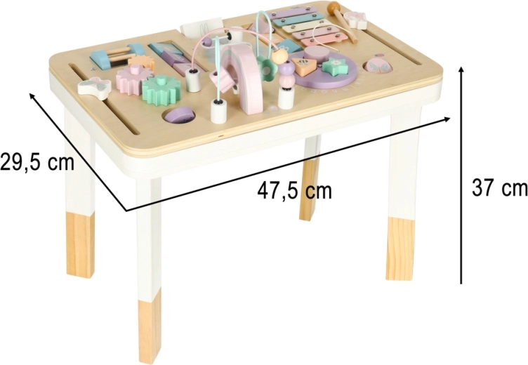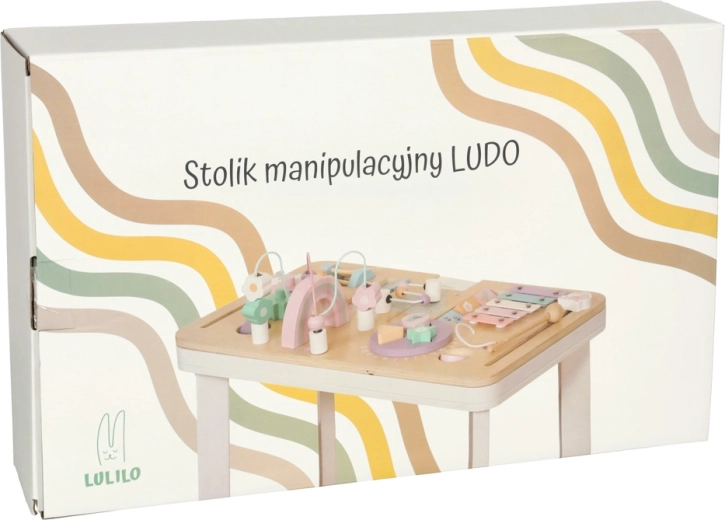 Il tavolino educativo in legno LULILO LUDO è un piccolo “centro educativo” domestico che offre ricchi stimoli sensoriali e incoraggia il gioco autonomo. Elementi pastello, bordi lisci e struttura stabile creano un ambiente sicuro per una curiosa esplorazione.