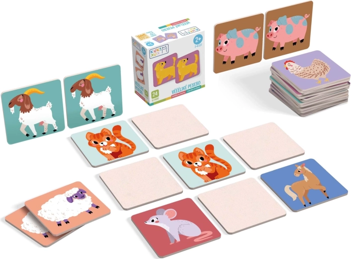 Pexeso Veeeeelico Animali del Cortile è il primo memory ideale per i bambini in età prescolare. Le carte grandi e facili da afferrare con allegre illustrazioni di animali domestici sviluppano memoria visiva, attenzione, vocabolario e motricità fine. L’opuscolo allegato offre idee per attività – dalla prima ricerca delle coppie al disegno secondo il modello fino al raccontare storie.