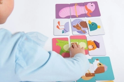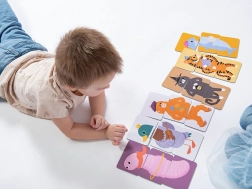 I bambini allenano motricità fine, attenzione e pensiero logico abbinando i pezzi corretti e creando combinazioni buffe di animaletti.