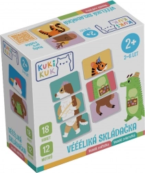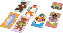 18 carte bifacciali raffiguranti 12 animaletti offrono molte varianti di composizione che intratterranno i bambini a lungo.