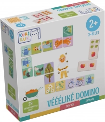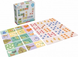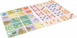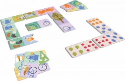Il gioco offre due varianti in una: domino illustrato con temi dal giardino (animali, giardinieri e attrezzi) e domino classico, in cui i puntini sono sostituiti da diversi tipi di frutta. Grazie alle tessere grandi e resistenti da 12 × 6 cm, il gioco è adatto anche ai più piccoli e favorisce l’apprendimento attraverso il gioco.
