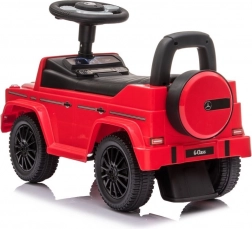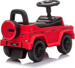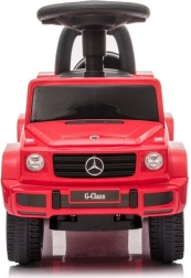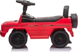Elegante monopattino senza pedali per bambini MERCEDES G‑Class in un vivace colore rosso, realizzato in plastica resistente, offre un look realistico, una comoda sella in similpelle e un sicuro schienale. Il bambino si spinge con i piedini, allenando equilibrio e coordinazione, mentre si diverte con i suoni del clacson e dell’avviamento del motore. Sotto la sella c’è un pratico vano portaoggetti; le ruote anteriori sono sterzanti per manovre facili.