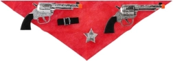 - 2 pistole in plastica, 2 fondine, distintivo da sceriffo, cintura; a seconda della variante può includere maschera e fazzoletto