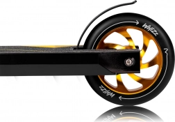Grazie al sistema di compressione HIC, il collegamento tra forcella e collarino è estremamente solido e affidabile. Le ruote in poliuretano, abbinate ai cuscinetti ABEC-9, offrono una scorrevolezza fluida e veloce, mentre il freno posteriore e la pedana antiscivolo aumentano la sicurezza. Il diametro da 110 mm bilancia perfettamente velocità e agilità.