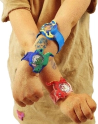 Delizioso orologio per bambini con motivo dinosauro e cinturino autoavvolgente basato sul principio del bracciale slap, che garantisce una vestibilità confortevole e una facile applicazione. Grazie alle lancette dei minuti e delle ore in colori differenti, i bambini imparano rapidamente a leggere l’ora. L’orologio ha un morbido cinturino in silicone ed è subito pronto all’uso grazie alla batteria LR626 inclusa.