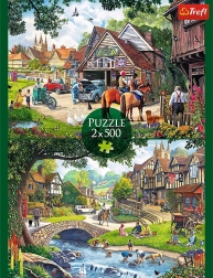 Vita Idilliaca è un set di puzzle che raffigura scene della tranquilla vita di una piccola cittadina. Ogni puzzle, una volta completato, crea un’immagine di 48 x 34 cm.