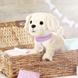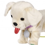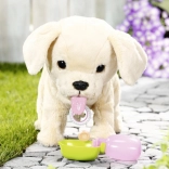 Quando beve dalla ciotolina, il cagnolino abbassa la testina, tira fuori la linguetta e si sente come sorseggia. Dopo aver bevuto, alza la zampetta e fa la pipì – una funzione realistica che entusiasma i bambini e stimola la loro fantasia nel gioco di cura dell’animale. L’ossetto attiva i suoni di sgranocchiamento, le carezze sulla schiena fanno scodinzolare e abbaiare allegramente.
