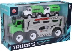 - Include: camion con ruote libere e 3 automobiline a retrocarica