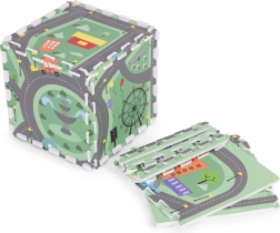 Questo tappeto in schiuma di alta qualità con un motivo cittadino dettagliato offre ai bambini infinite possibilità di gioco: strade, vie e incroci invitano a far correre le macchinine e a inventare storie. Grazie allo spessore di 1 cm, la superficie è piacevolmente morbida, assorbe gli urti e allo stesso tempo isola dal pavimento freddo. Il tappeto è realizzato in schiuma EVA certificata, leggera, resistente e delicata sulla pelle dei bambini.