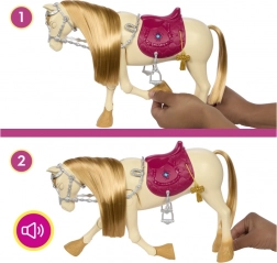 Questo cavallo può trasformare il suo movimento, aiutando le giovani principianti a diventare eroine premurose. Tocca la criniera o premi la gemma sulla sella per attivare canzoni e suoni. Grazie agli snack, agli accessori decorativi e ad altri componenti per il racconto, questo cavallino è pronto ad aggiungere magia a ogni giornata dei bambini.