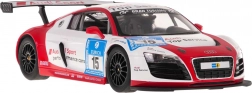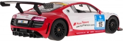 Fedela replica della vettura da corsa AUDI R8 LMS con carrozzeria dettagliata, spoiler e grafica racing per un’esperienza autentica.