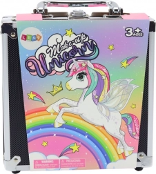 Elegante set cosmetico in una valigetta nera che farà felice ogni piccola amante del trucco e della manicure. Contiene ombretti colorati (opachi, satinati e glitterati), smalti per unghie, glitter e pratici accessori. La valigetta è leggera e facile da trasportare, ideale per i viaggi e per giocare con le amiche. Un ottimo regalo per bambine 3+, stimola creatività e motricità fine.