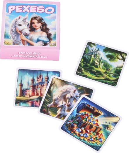 Goditi un gioco divertente e di memoria con il nostro Pexeso Unicorno. Questo set include un totale di 64 carte, che rappresentano 32 coppie di unicorni magici.
