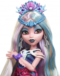 Preparati per il Monster Fest, l'evento musicale più straordinario dell'anno, con la bambola Monster High Lagoona Blue. Questo stiloso mostro marino nel suo outfit ispirato alle barriere coralline e con una gonna scintillante è pronto a immergersi nell'oceano dei suoni e a divertirsi tutta la notte con cibo, danza e tante foto.