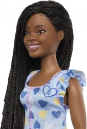 Questa bambola alla moda BARBIE offre ai bambini ispirazione per raccontare le proprie storie. Indossa un vistoso abito blu decorato con cuoricini colorati, completato da occhiali e scarpe rosa. Le lunghe treccine e l'espressione allegra la rendono un'amica ideale per il gioco quotidiano e per stimolare la fantasia.
