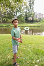 Il gioco offre sia divertimento che attività fisica, mentre i bambini competono per catturare la frutta volante. È facile da capire e rapidamente diventerà un'attività preferita di ogni giornata familiare all'aperto.