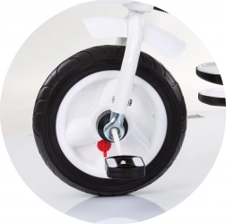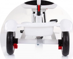 La dotazione pratica include sedile girevole in 2 direzioni, 2 posizioni di inclinazione, poggiapiedi pieghevole, cappottina pieghevole con visiera parasole e cestini anteriore e posteriore per i piccoli oggetti. Le grandi ruote in gomma con parafanghi offrono stabilità e una guida silenziosa, mentre il manubrio con musica e luce entusiasma i piccoli piloti.
