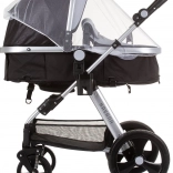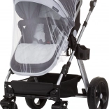 Ampia cappottina regolabile con parasole, cinture a 5 punti imbottite, cestello capiente, barra di sicurezza removibile, coprigambe, borsa, portabevande e zanzariera – tutto incluso.