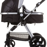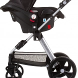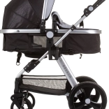 Il telaio in lega leggera è facile da manovrare; le ruote ammortizzate a sgancio rapido affrontano sia la città sia i terreni più impegnativi, mentre le ruote posteriori dispongono di un affidabile freno a barra articolata. L’ampia cappottina regolabile con parasole removibile, le cinture a 5 punti con morbida imbottitura e il nuovo fermo di stabilizzazione di seduta e navicella (collezione 2024) aumentano sicurezza e comfort.