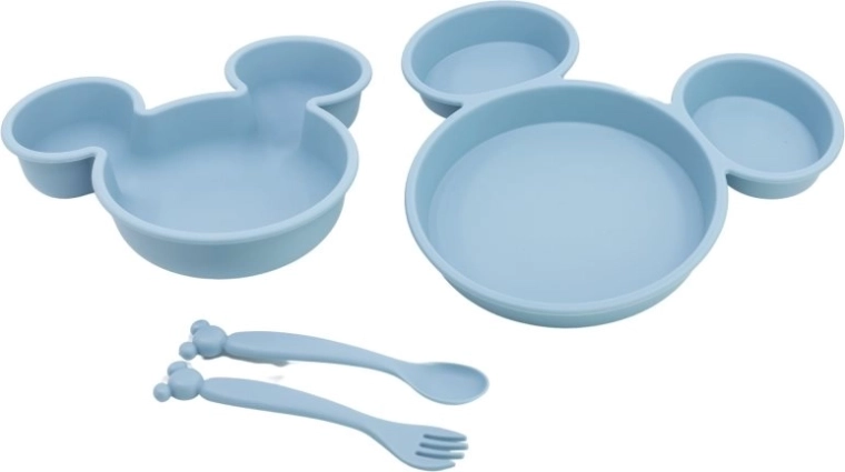 - Composizione del set: Piatto, scodella, cucchiaio e forchetta con design di Mickey Mouse.