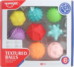 Scopri la magia delle palline sensoriali con questo set contenente 8 palline in gomma di vari colori e forme, ideali per stimolare i sensi e sviluppare le abilità motorie nei bambini dai 6 mesi in su.