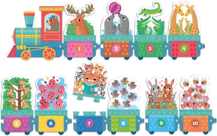 Scopri il divertente e educativo Puzzle Maxi treno con animali! Ideale per i bambini, aiuta a sviluppare vocabolario e motricità fine. Partiamo!