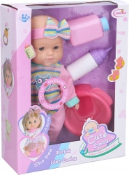 Il ricco set di accessori in confezione – biberon, borotalco e vasino – supporta un divertimento creativo e duraturo. Grazie alle dimensioni compatte, il bambolotto è ideale per le mani dei più piccoli e si trasporta facilmente in viaggio.