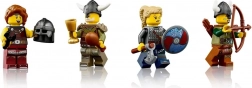 - Quattro minifigure - fabbro, jarl, scudiero e arciere, con armi e accessori tra cui più scudi, una spazzola, martelli, spade, lance e un calice, arco e freccia