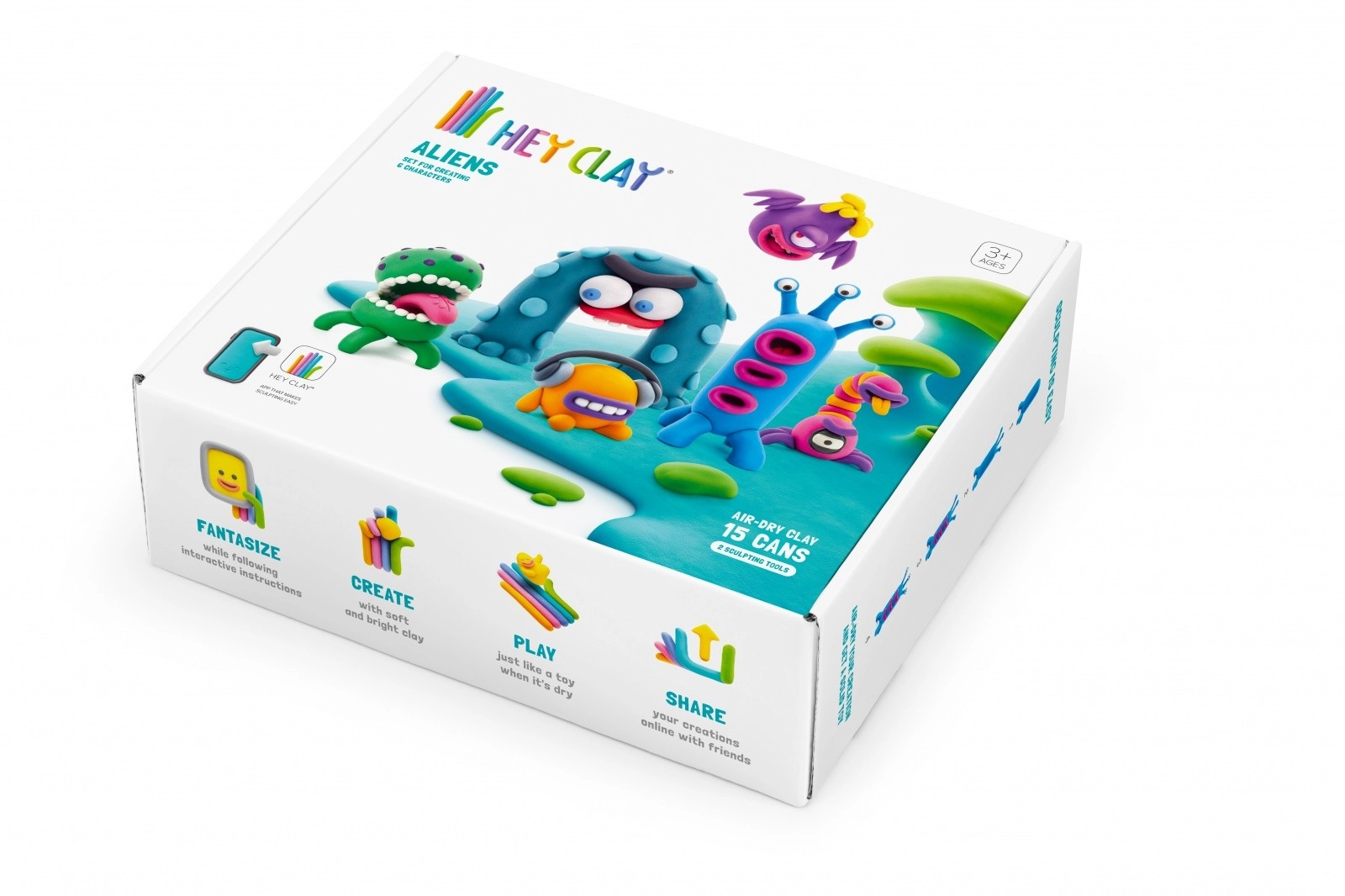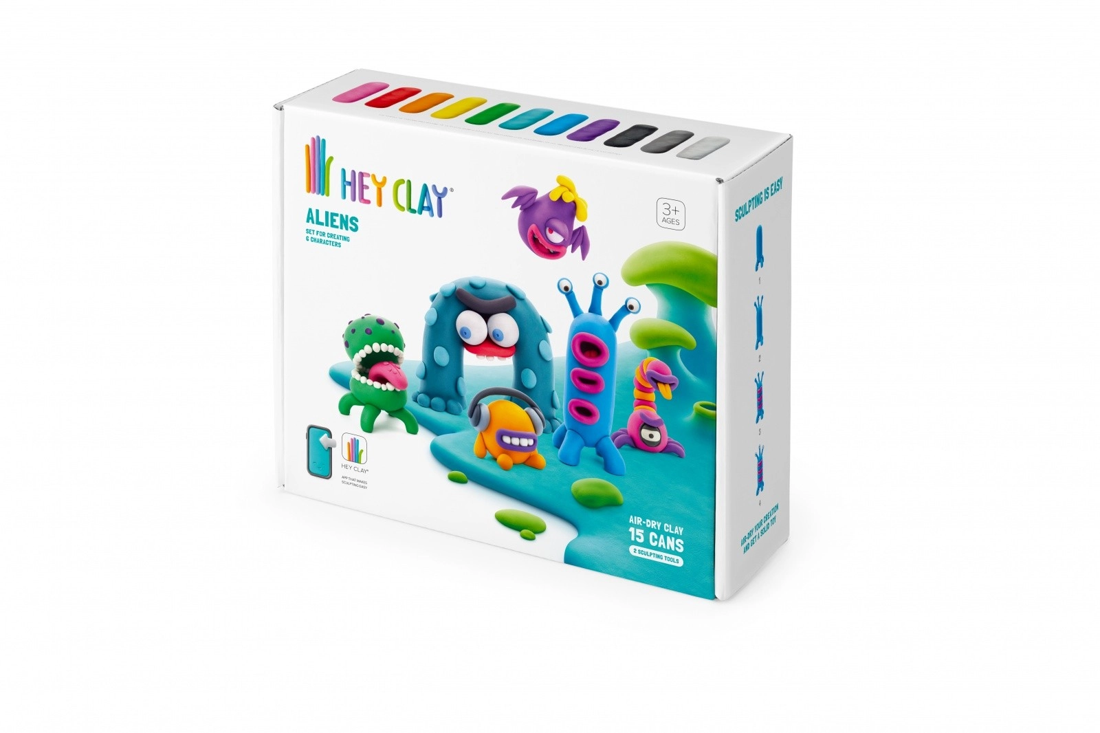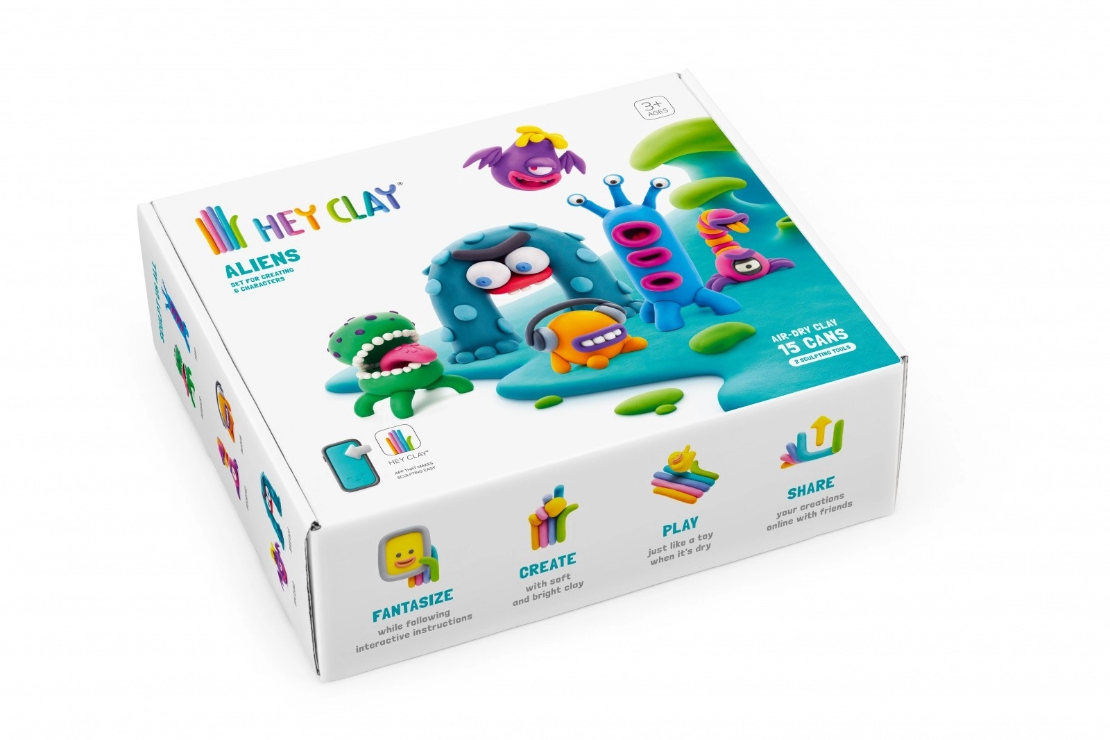 Il set Hey Clay Aliens offre ai bambini un modo giocoso per entrare nel mondo della creatività. La pasta modellabile “schiumosa” leggera e autoindurente non appiccica e non sporca, mantiene perfettamente la forma e, una volta asciutta, i personaggi possono essere esposti o usati per continuare a giocare. Grazie a 15 colori vivaci e alle semplici istruzioni passo-passo nell’app, i bambini possono creare fino a sei simpatici alieni e avere ancora materiale per le proprie idee.