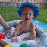 Pratica visiera da bagno per bambini in morbida schiuma EVA che protegge occhi e viso da acqua e shampoo. Grazie alla chiusura regolabile a bottoni a pressione, calza perfettamente, è leggera, ad asciugatura rapida e facile da pulire – per un lavaggio dei capelli senza lacrime e un bagnetto confortevole ogni giorno.