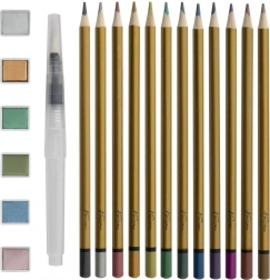 Scopri le possibilità creative con questo set acquerello metallico da 19 pezzi in resistente scatola di metallo. Include 12 matite, 6 colori acquerello e un pennello – ideale per disegno, pittura e accenti metallici d’effetto.