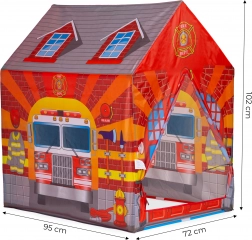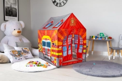 La tenda per bambini Stazione dei vigili del fuoco farà felici tutti i piccoli eroi. Le stampe realistiche del veicolo e dell’equipaggiamento dei pompieri incoraggiano i bambini ad attività di role-play e al gioco autonomo. La struttura leggera ma stabile e il resistente rivestimento in poliestere assicurano facile trasporto e utilizzo sicuro in casa e all’aperto.