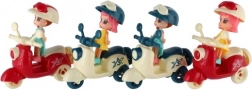 La bambola e il motorino sono disponibili in quattro diverse combinazioni di colori, così ogni bambino può scegliere la sua preferita.