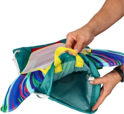 Una sacca elegante con motivo marino che aiuta a trasportare comodamente l’attrezzatura da nuoto: dalla coda/monopinna al costume e all’asciugamano. Le parti traspiranti consentono un’asciugatura rapida dopo l’uso, così il contenuto non rimane umido a lungo.
