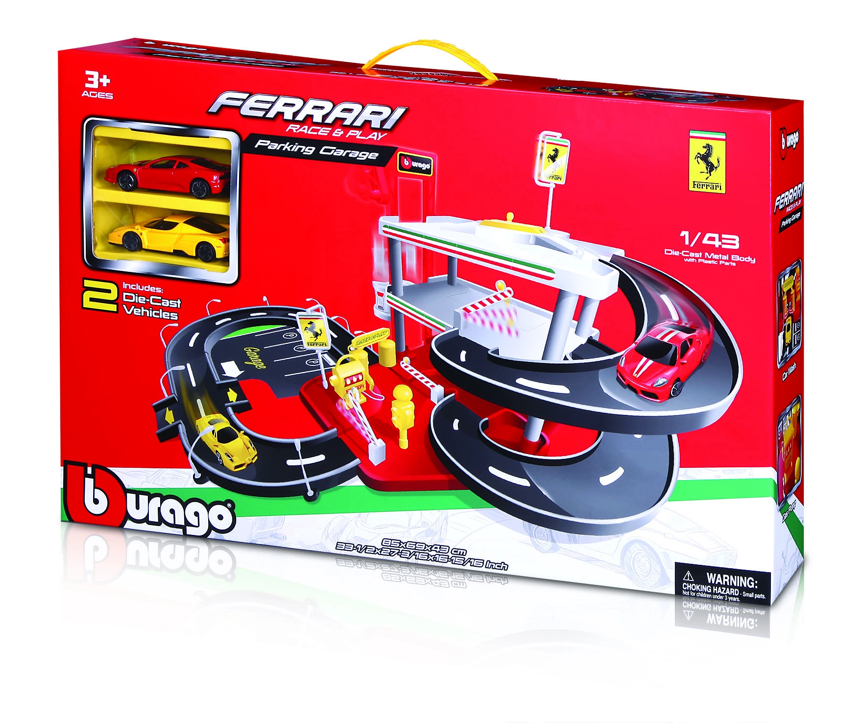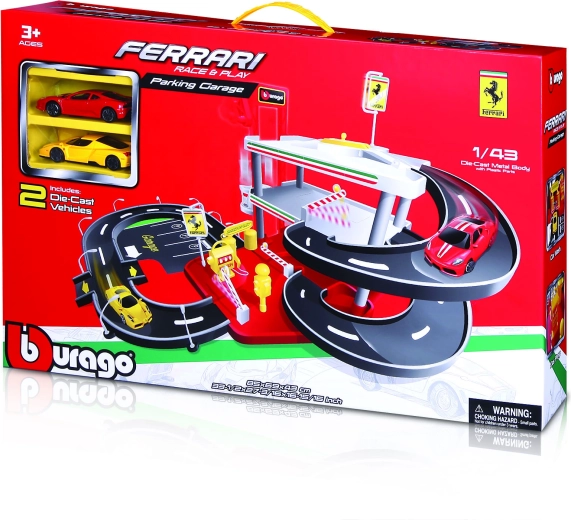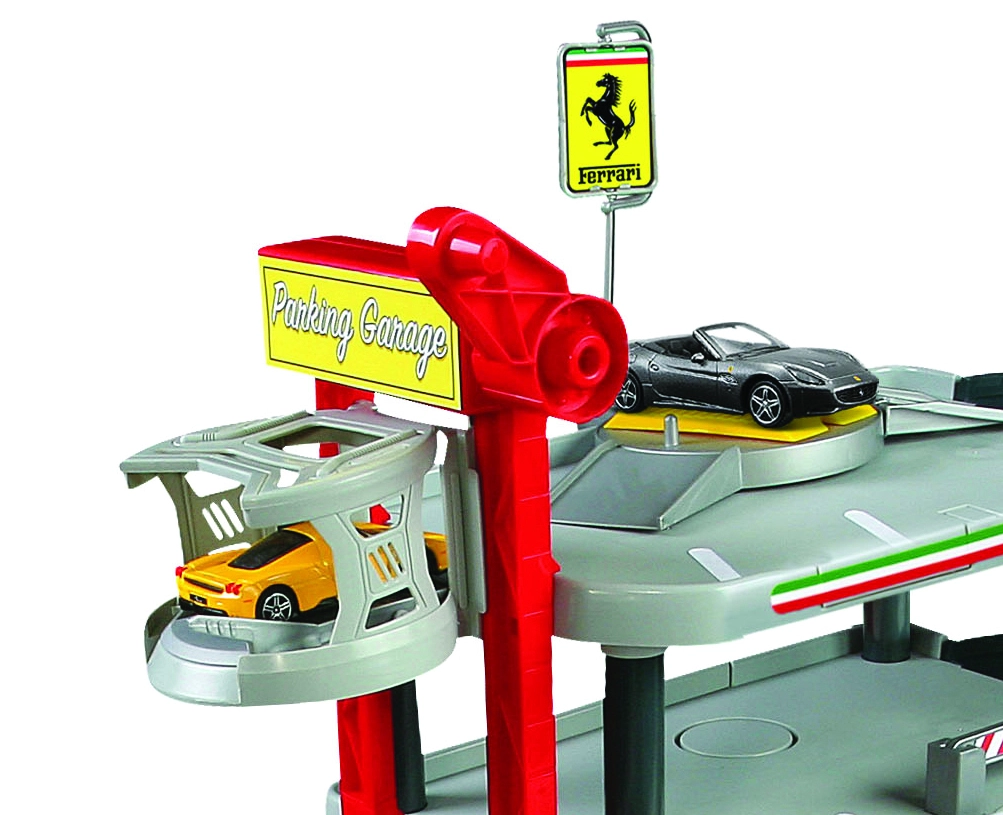 Scopri il divertimento su tre piani con il garage FERRARI Race & Play per piccoli piloti. Include ascensore funzionante, autolavaggio, colonnine di rifornimento, piattaforma sollevabile e due modelli FERRARI in metallo 1:43. I componenti in plastica colorata si montano e smontano facilmente, così i bambini potranno godersi infinite ore di gioco creativo e realistico.