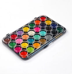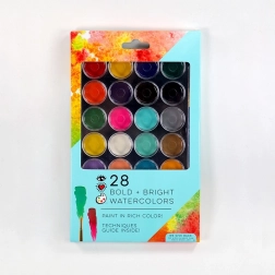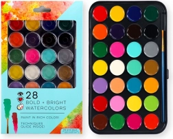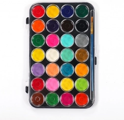 Scopri infinite possibilità di gioco con i colori e crea i tuoi quadri originali. Questo pratico set compatto di 28 acquerelli in splendide tonalità brillanti permette a chiunque di esprimere la propria creatività. Il set è racchiuso in un astuccio di plastica che protegge i colori dall’essiccazione e ne facilita l’uso quotidiano. Il set include un pennello e una breve guida alle tecniche ad acquerello. Grazie ad essa, chiunque può imparare a combinare i colori e creare nuove tonalità. È un regalo ideale per bambini, amici e tutti coloro che amano dipingere.