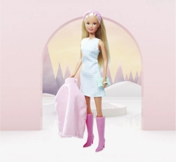 Scoprite lo stile senza tempo della bambola STEFFI LOVE con oltre 30 anni di tradizione. Questa icona di moda ama outfit eleganti e acconciature moderne. Nell'edizione Cape Fashion brilla con una morbida mantellina in peluche, un delicato abito azzurro con motivo pied-de-poule e accessori coordinati in rosa: cerchietto, stivaletti e piccola clutch.