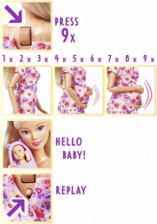 Funzione unica del pancino che cresce: al nono clic del pulsante il bebè “nasce”. Il processo si può facilmente resettare e rivivere.