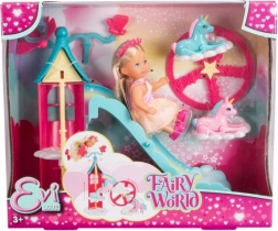 Scopri il magico mondo con la bambola Evi Love e il suo playset ricco di funzioni. Troverai un ascensore mobile, una giostra tra le nuvole per 2 unicorni, uno scivolo e un nascondiglio segreto per la bacchetta magica. La bambola alta 12 cm, con abito pastello scintillante e ali da fata, porta con sé fantasia, divertimento interattivo e sviluppo della creatività dei bambini.