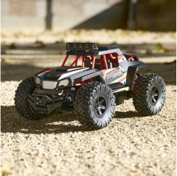 Il suo aspetto impressionante è dovuto soprattutto alle enormi ruote in gomma massiccia, grazie alle quali è pronto per ogni avventura. Le gare in fuoristrada a velocità fino a 15 km/h sono all’ordine del giorno. Grazie ai fari luminosi sopra la cabina, l’auto radiocomandata attira tutti gli sguardi anche al crepuscolo.