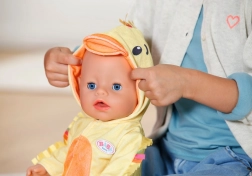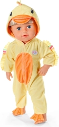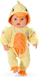 Trasforma la tua bambola BABY born nella tenera anatroccola Berta. Questa morbida tutina con cappuccio e becco è ideale per travestimenti e per un gioco creativo. Facile da indossare grazie alla cerniera frontale, piacevole materiale peluche e divertenti dettagli da anatra che faranno felice ogni piccolo caregiver.