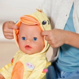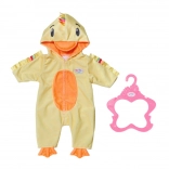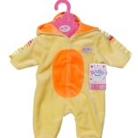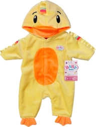 Morbida tutina da anatroccola per bambole BABY born in misura 43 cm che trasforma il gioco in una coccolosa avventura. Il cappuccio con becco, il pancino arancione a contrasto e i piedini “da nuoto” creano un look tenerissimo, mentre la cerniera frontale facilita il cambio e l’allenamento della motricità fine.
