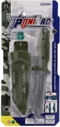 La lavorazione dettagliata del coltello con manico verde e lama grigia crea un aspetto autentico per giocare ai soldati.