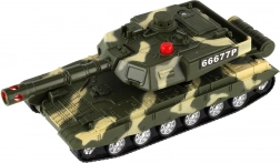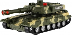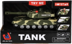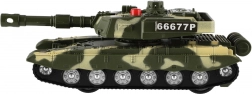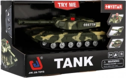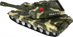 Parti all’azione con il robusto carro armato in plastica a retrocarica, che dopo una spinta scatta velocemente in avanti. La torretta girevole con cannone lungo e i dettagli realistici del telaio si alternano a spettacolari effetti luminosi e sonori, che intensificano ogni scenario di gioco.