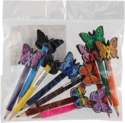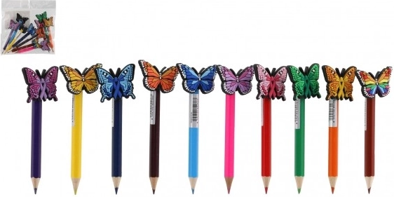 Ogni matita è decorata con una farfalla colorata, che dona alle matite un aspetto allegro e funzionale.