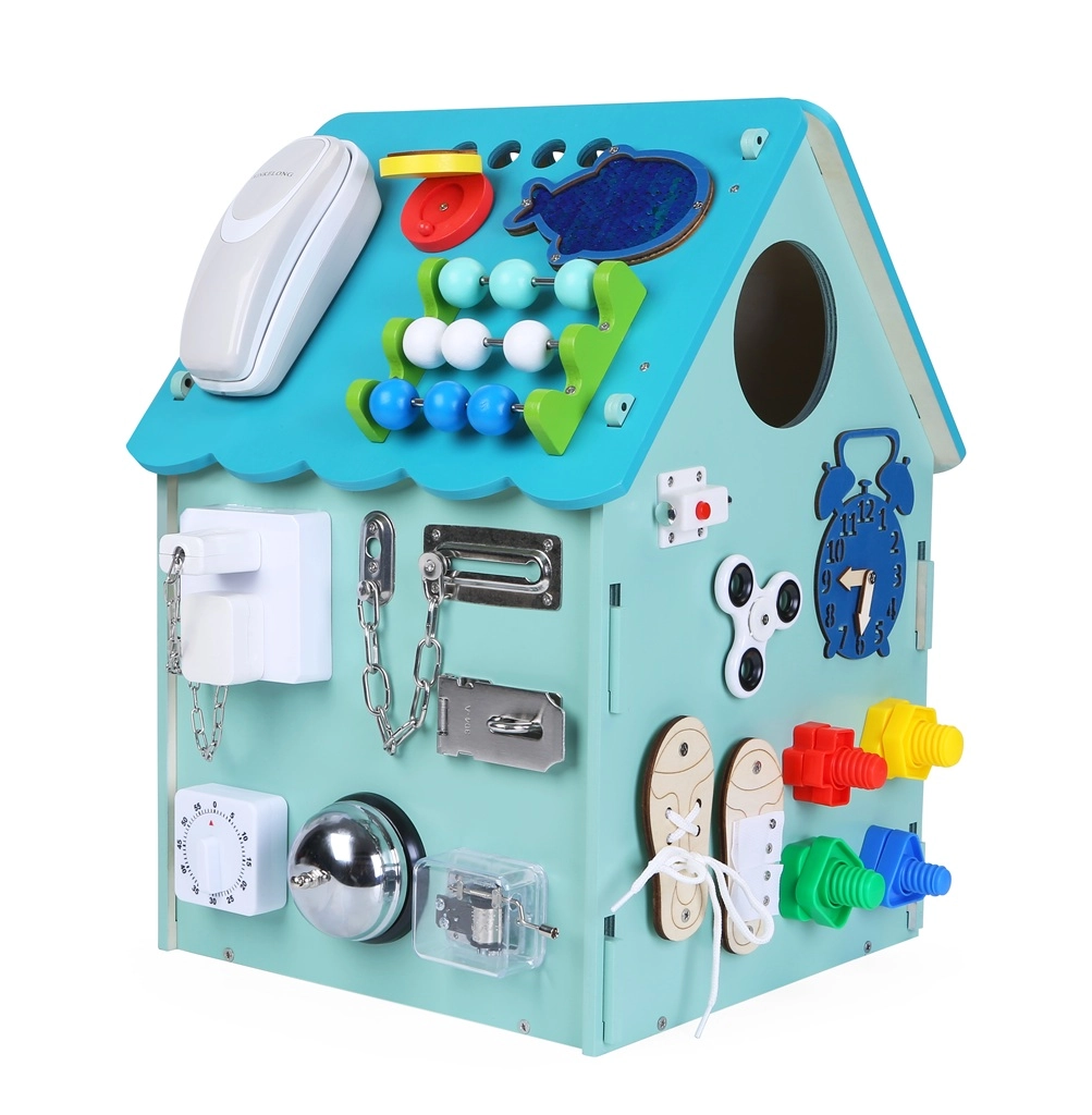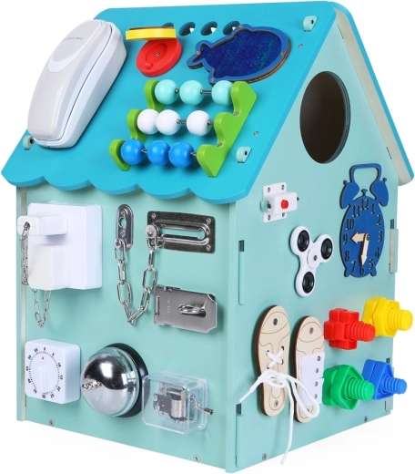 La casetta activity board interattiva 2Kids Toys offre ai bambini dai 3 anni ore di scoperta e apprendimento. Include serrature, fibbie, lacci, telefono, campanello, contatore e orologio per sviluppare motricità fine, coordinazione mano–occhio, creatività e stimolazione sensoriale. Consegnata già montata in scatola.