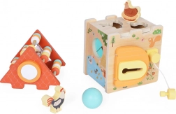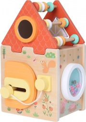 Questo giocattolo è ideale per lo sviluppo dei bambini, perché ogni lato della casa nasconde nuove avventure. Che si tratti di inserire, spostare o chiusure. Il cubo include anche un contatore che funge da tetto della casetta.