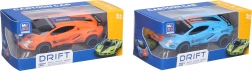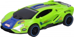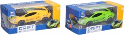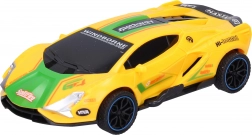Macchinina da corsa drift a inerzia con dimensioni 15,5 × 8 × 4 cm. Basta lanciarla e, grazie alla rotellina posizionata perpendicolarmente al centro del telaio, derapa da sola. Disponibile in 4 colori – blu, verde, arancione, giallo; divertimento senza batterie.